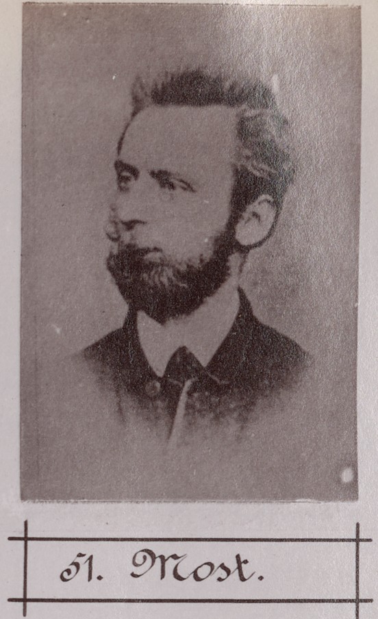 Noch im Dezember 1878 emigrierte Johann Most nach London (England). Hier wurde er Mitglied des »Communistischen Arbeiter-Bildungsvereins«. Vor allem aber gab er am 3. Jänner 1879 die erste Nummer seiner zunächst sozialdemokratischen Zeitung »Freiheit« (London) heraus, später wichtiges Organ der sozialrevolutionären und anarchistischen Bewegungen. Aus diesem Anlass ließ Most Plakate auf rotem Papier in der Stadt anschlagen: »Kauft das Blatt und schickt es Euren Freunden in Deutschland. Die Freiheit ist todt, es lebe die Freiheit!«. Seine Zeitung »Freiheit« wurde nur teilweise per Post verschickt; das Gros der Auflage wurde über ein kompliziertes Netzwerk in die Schweiz, in die deutschen Länder und nach Österreich geschmuggelt. Gerade in Österreich wurde die Zeitung rasch zu einem wichtigen Organ der radicalen Arbeiterbewegung. Most geriet in immer heftigere Konflikte mit der »Sozialistischen Arbeiterpartei Deutschlands«, die ihn auf dem geheimen Parteitag auf Schloss Wyden in Ossingen (Kanton Zürich, Schweiz), 20. bis 23. August 1880, in Abwesenheit Mosts aus der Partei ausschloss. Most begann nun, seine anarchistischen Positionen zu formulieren, und er spielte eine zunehmend wichtige Rolle beim Londoner anarchistischen »Communistischen Arbeiter-Bildungsverein«. Er war auch Mitorganisator des in London abgehaltenen, für die anarchistischen Bewegungen in Europa wichtigen International Social Revolutionary Congress (Internationaler Sozialrevolutionärer Kongress), 14. bis 20. Juli 1881, wenngleich er an diesem nicht mehr teilnehmen konnte. Als Most das erfolgreiche Attentat auf den russischen Zaren Alexander II. ‹Александр II› (1818–1881) in seiner am 19. März 1881 erschienenen Zeitung »Freiheit« bejubelte, wurde er am 23. März 1881 vorübergehend festgenommen, dann am 30. März 1881 verhaftet und in das Gefängnis Clerkenwell in London gebracht. Am 4. Mai 1881 beschloss die Jury die Einleitung einer Untersuchung wegen Aufreizung zum Mord. Vom 23. bis 25. Mai 1881 fand der Prozess vor dem Schwurgericht statt, in welchem ihn die Geschworenen für schuldig befanden. Nach der Bestätigung des Schuldspruchs am 18. Juni 1881 verhängte der Richter am 26. Juni 1881 über Most sechzehn Monate Zwangsarbeit (hard labour), wobei ihm die drei Monate Untersuchungshaft nicht angerechnet wurden. Während Mosts Gefängniszeit erschien die Zeitung »Freiheit« weiter, doch als ein neuerlicher Prozess gegen die Redaktion angestrengt wurde – in der Zeitung war die Ermordung von Lord Frederick Cavendish (1836–1882) durch irische Nationalisten begrüßt worden –, musste eine Verlegung der Zeitung »Freiheit« in Angriff genommen werden. Am 26. Oktober 1882 konnte Most das Gefängnis Clerkenwell verlassen.