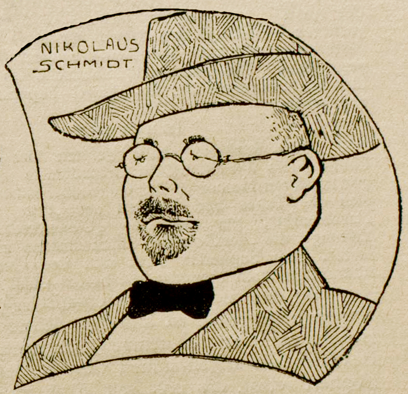 Karl F. Kocmata (1890–1941): Nikolaus Schmidt, der Dichter der Millionen, in: Neue Freie Worte (Wien), 2. Jg., Nr. 26 (18. April 1912), S. 7.